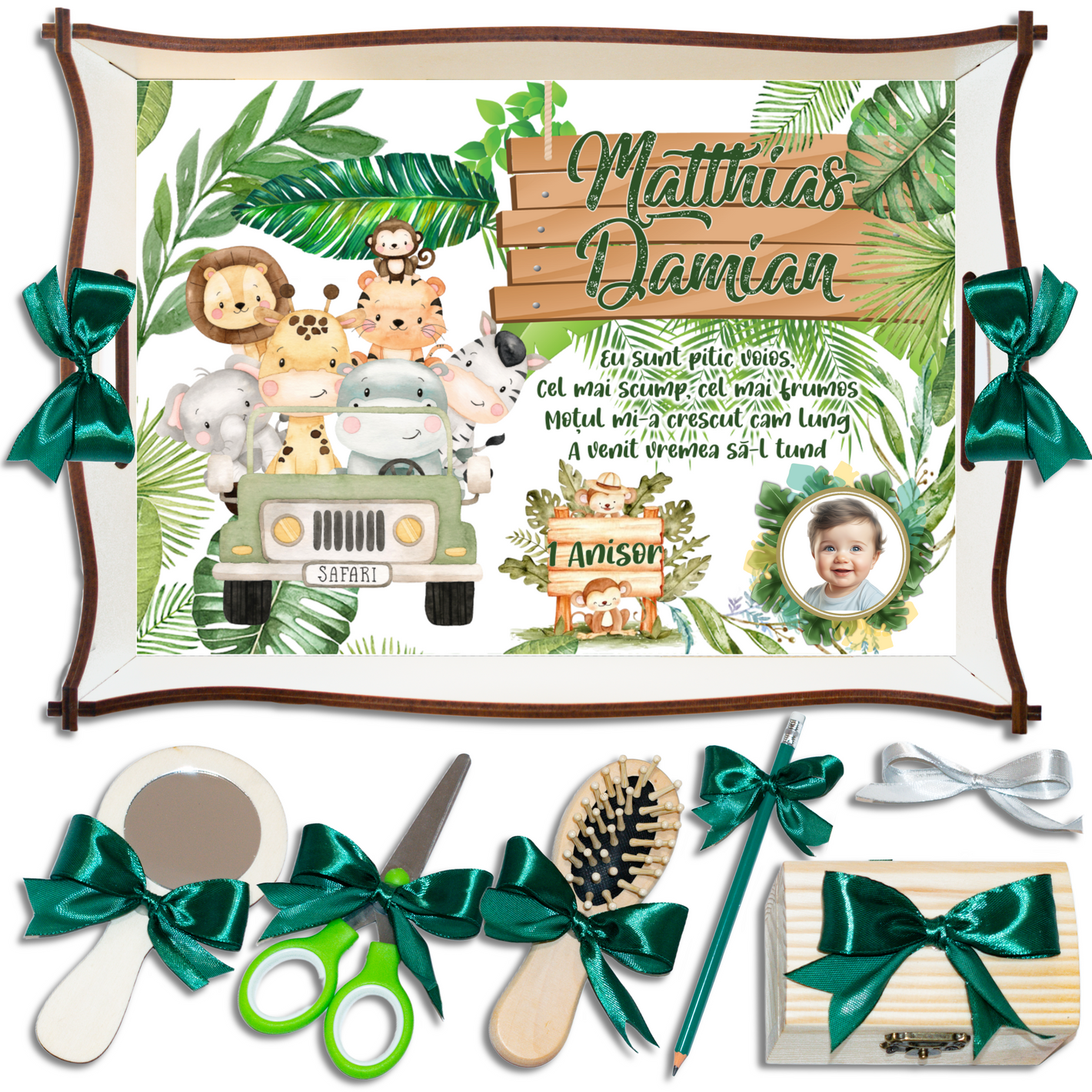 Poți alege între o tăviță simplă, personalizată doar cu designul dorit, sau un set complet care include accesorii precum: oglindă, foarfecă, perie și alte elemente tematice. Toate opțiunile sunt disponibile pe pagina fiecărui produs, iar tu decizi ce vrei să incluzi în pachet.
