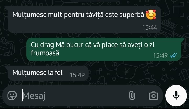 Timpul de procesare este de 1-2 zile lucrătoare, în funcție de complexitatea modelului ales. Livrarea prin curier rapid durează, de obicei, 1-2 zile lucrătoare.